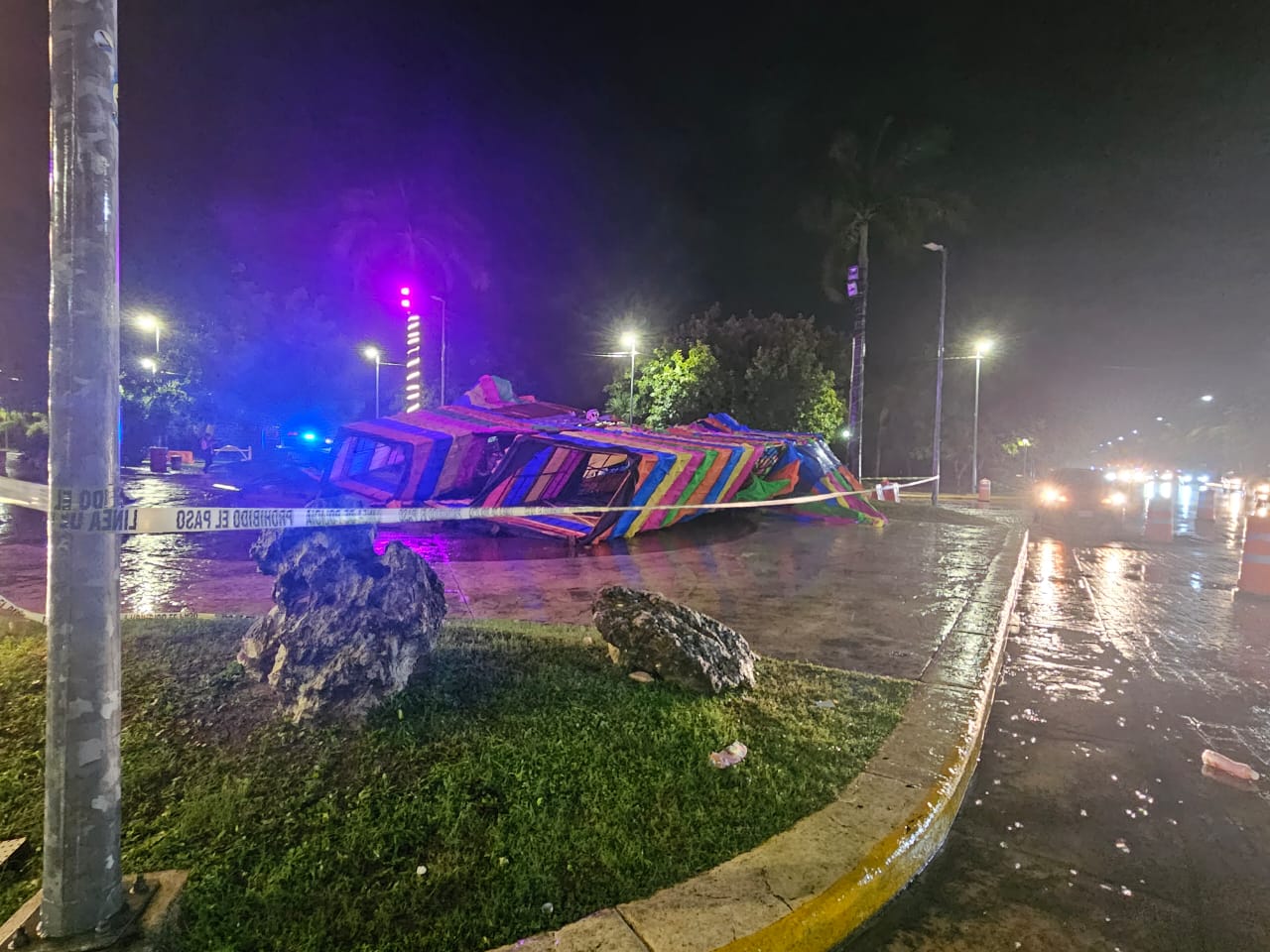 La estructura cayó hacia la avenida Bonampak, donde afortunadamente ningún automovilista o peatón resultó herido.