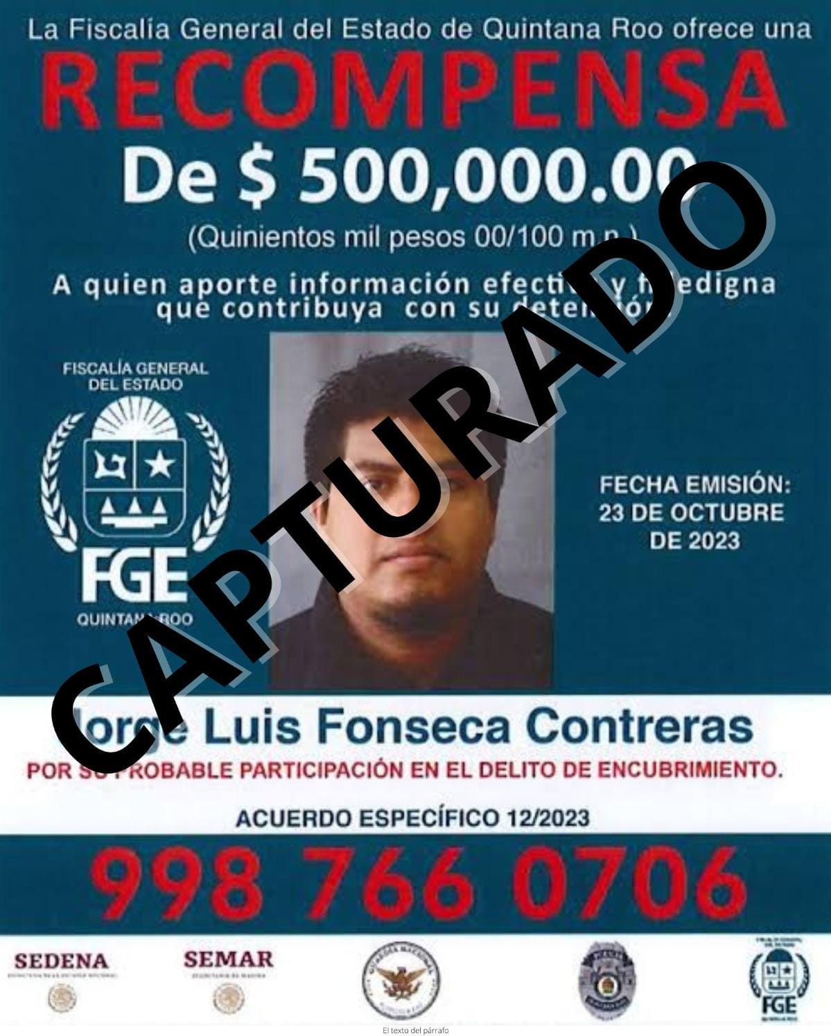 Fue el 23 de octubre cuando la FGE publicó en el Periódico Oficial una recompensa de 500 mil pesos, misma que fue difundida en redes sociales hasta una semana después.