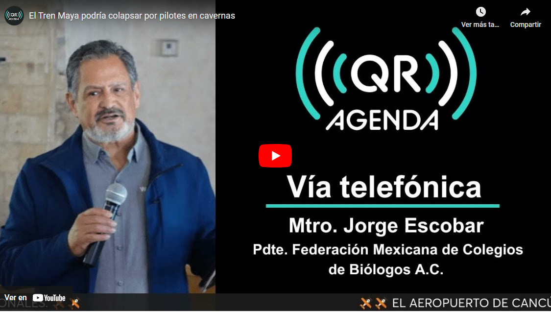 El Mtro. Jorge Escobar, Presidente de la Federación Mexicana de Colegio de Biólogos A. C. destacó que diversos grupos de especialistas han registrado la afectación directa al suelo kárstico en diversos tramos del Tren Maya, y esto deja la posibilidad de colapsos del tren una vez que esté finalizado.