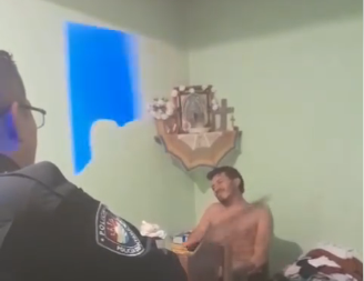En la grabación, de tan solo 19 segundos, se observa a un hombre, identificado como Luis Enrique “N”, al interior de un domicilio con un machete, con el que amenaza con cortarse el cuello, en tanto, un policía lo apunta con una pistola.