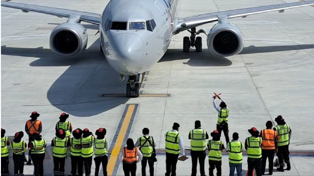 Este jueves 28 de marzo arribó American Airlines en 4 vuelos programados durante el día, con lleno total en sus aeronaves, un promedio de 600 pasajeros.