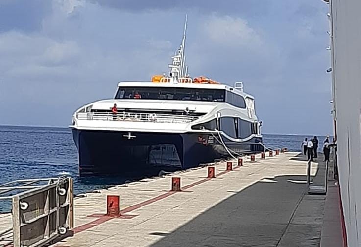 Un pequeño grupo de personas descendió del barco de la compañía Xcaret Xailing, mientras se observaba la taquilla vendiendo boletos. Sin embargo, todo esto fue parte de un ensayo final antes de que el barco comience oficialmente sus operaciones.