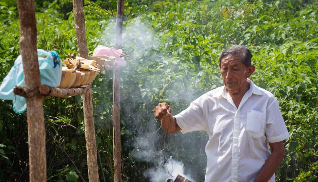 Teodoro Canul Balam, sacerdote de esta ciudad, comentó que a él le toca oficiar estas ceremonias en esta temporada, para lo cual necesitan primero colocar unas maderas, llamadas “kaanché”, sobre la que colocan la ofrenda.