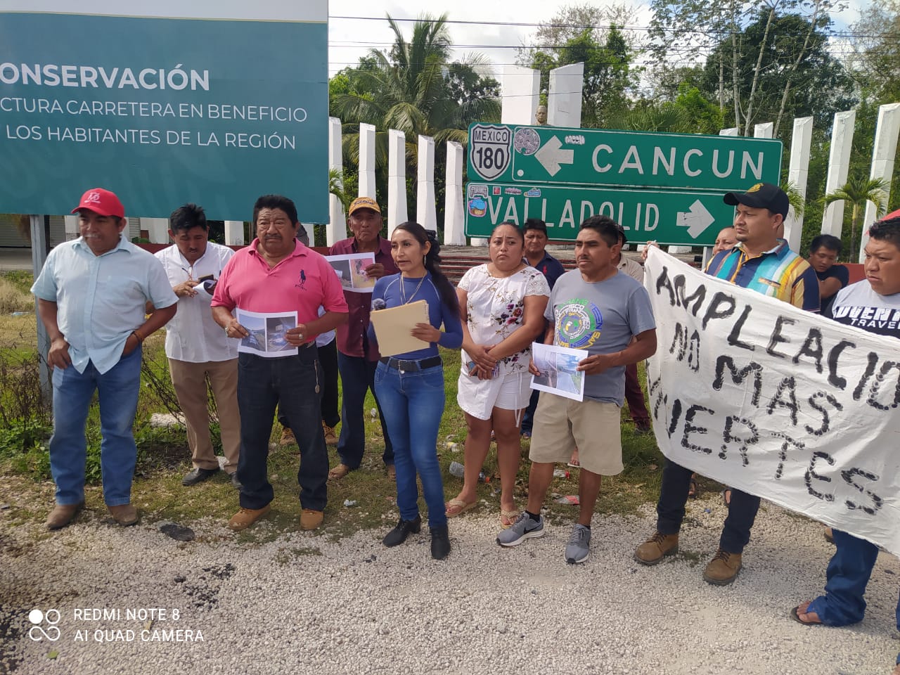 Los manifestantes portaron una manta donde se leía “Ampliación, no más muertes”, además del documento que entregaron a las autoridades para solicitar el acotamiento de la carretera de Nuevo X-Can a la comunidad El Ideal, Valladolid Nuevo, hasta llegar a Cancún.