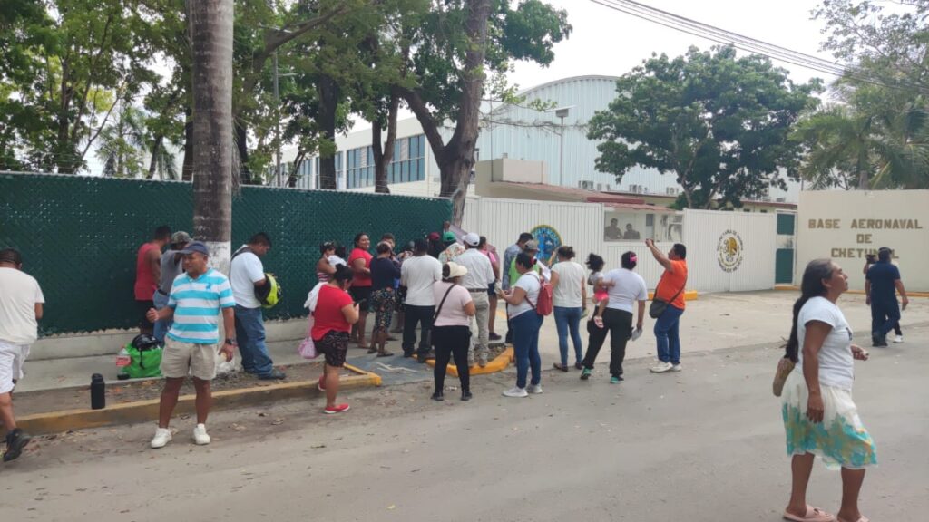 Chetumal.- Habitantes del fraccionamiento El Sol de Mahahual se congregaron ayer a las afueras de la Base Naval de Chetumal, donde se encontraba el presidente Andrés Manuel López Obrador, para expresar su inconformidad por el alza en el precio de predios por parte de la Agencia de Proyectos Estratégicos de Quintana Roo (Ageproo).