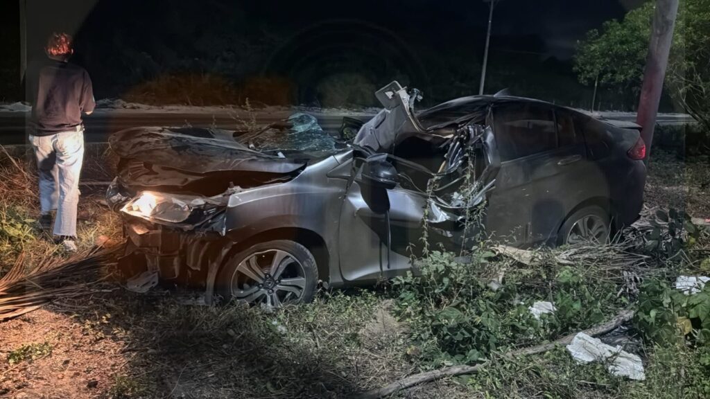 Según los primeros reportes, alrededor de las 11:46 de la noche, el conductor del automóvil perdió el control al manejar a exceso de velocidad cuando se dirigía hacia Cancún, lo que provocó que chocara contra la guarnición para finalmente volcarse y estamparse contra el poste.