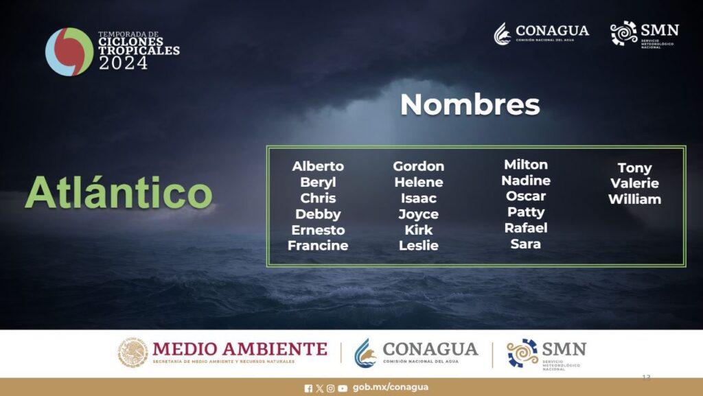 La Coordinación Nacional de Protección Civil y la Comisión Nacional del Agua (Conagua), pronostican una temporada muy activa de ciclones tropicales para este 2024, con una mayor presencia de fenómenos ciclónicos en el Atlántico. Esto fue informado durante la reunión nacional de Protección Civil que se realiza en La Paz, Baja California, en la que se detalló que para el Atlántico se estima un 50% más presencia de ciclones del promedio que corresponde a 14 sistemas, en tanto, para el Océano Pacifico se espera una temporada de normal y hasta un 10% por arriba del promedio que corresponde a 15 sistemas.