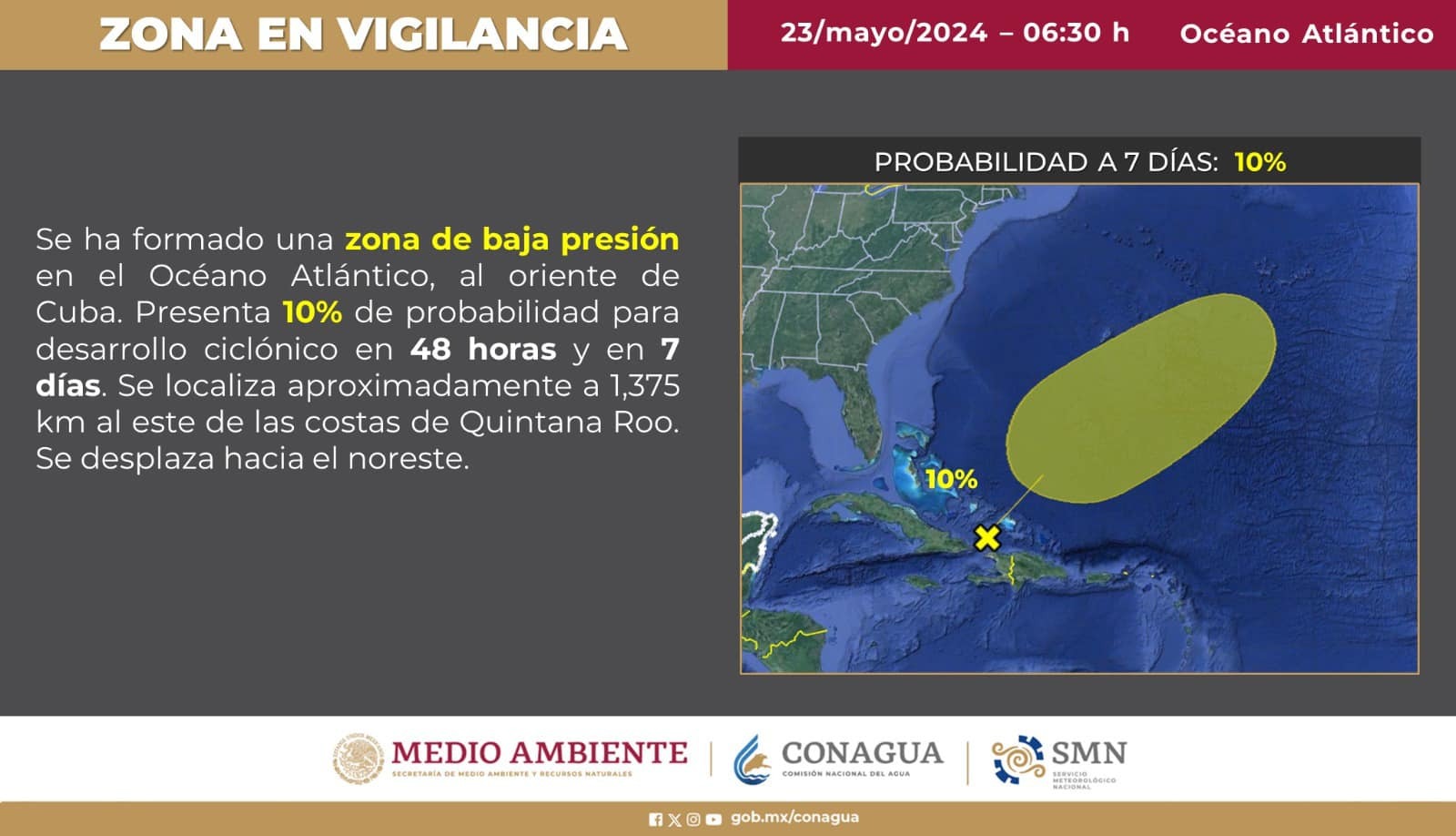 Hasta el momento, este fenómeno no representa un riesgo para el estado de Quintana Roo, aunque las autoridades continuarán monitoreando su evolución y brindarán actualizaciones conforme así sea necesario.