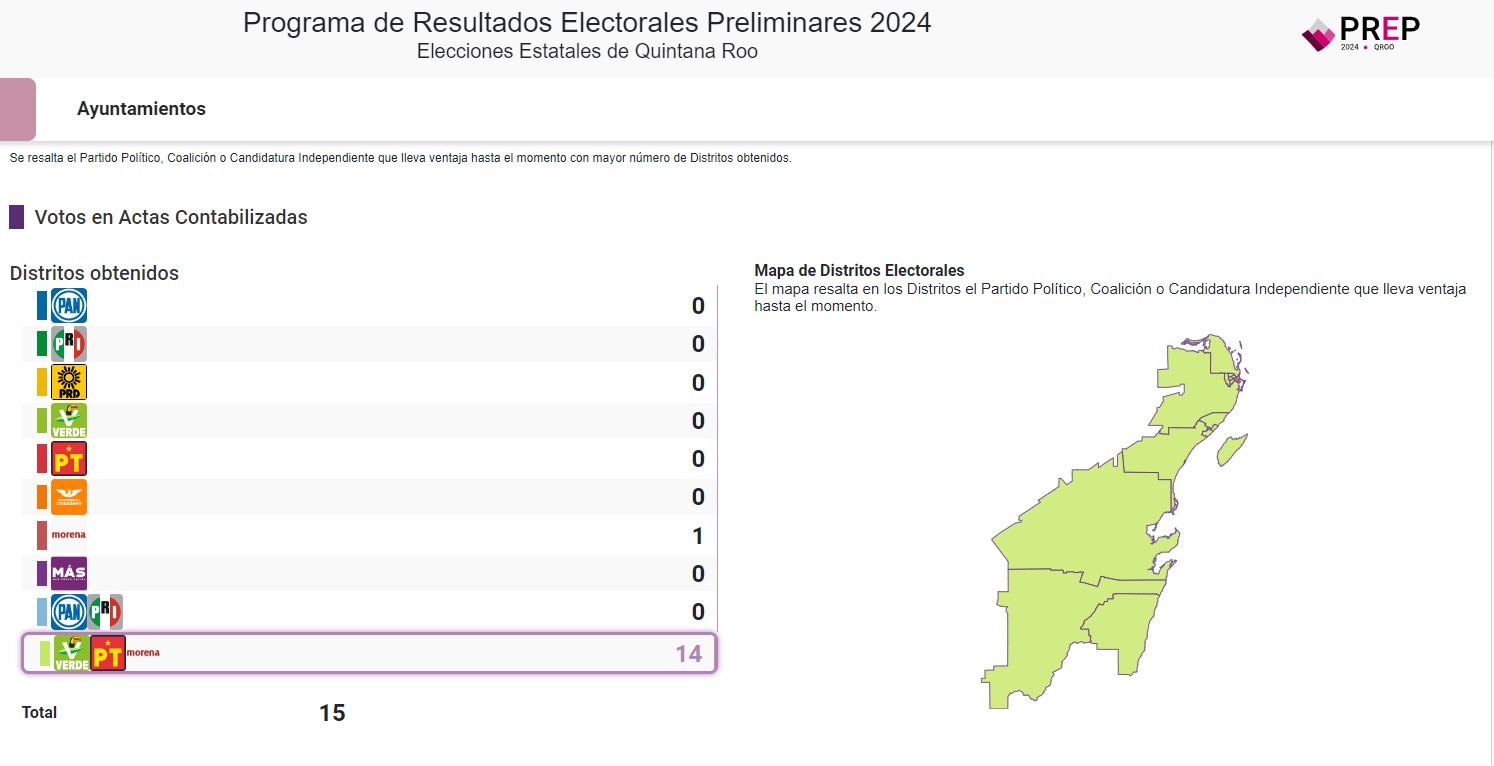 Continue readingMuestra PREP Quintana Roo amplia ventaja de Morena-PVEM-PT, salvo en Othón P. blanco