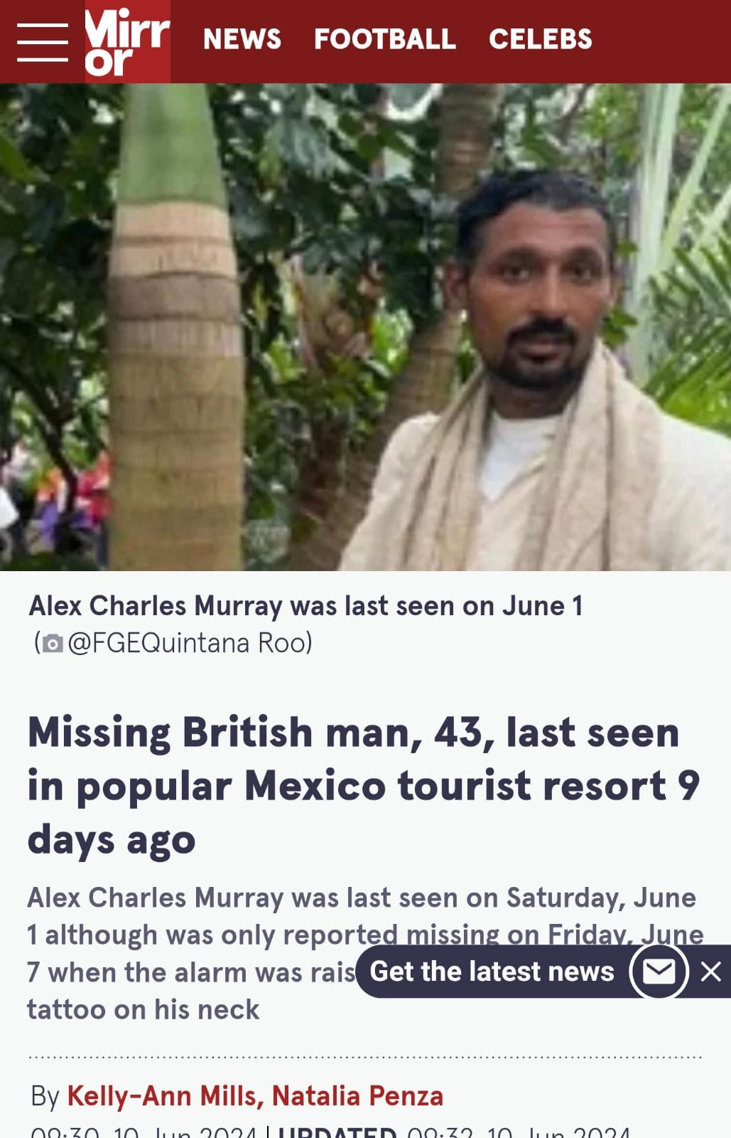 En la publicación se hace referencia a la ficha de búsqueda de la Fiscalía General del Estado emitida el 7 de junio, seis días después de que fuera visto por última vez el turista de nacionalidad británica y que se encontraba en Playa del Carmen.