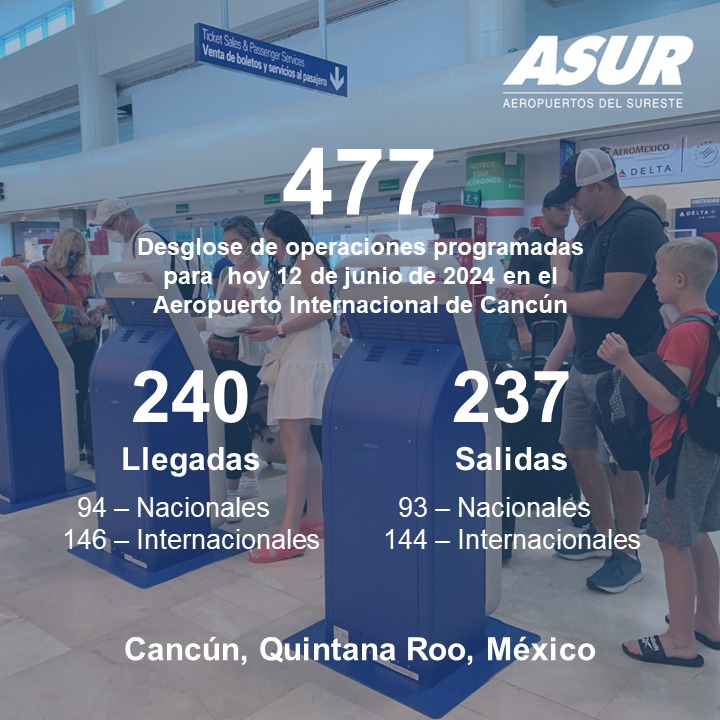 Continue readingAeropuerto de Cancún registra intensa actividad con 477 operaciones programadas