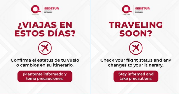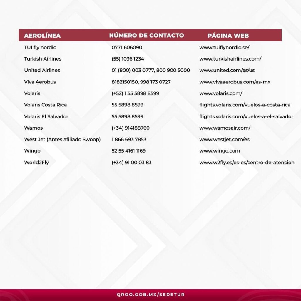Por su parte, la gobernadora Mara Lezama Espinosa hizo un llamado a turistas y nacionales que estén por viajar que tomen las medidas necesarias para evitar afectaciones en sus vuelos.