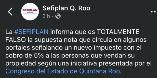Continue readingGobierno de Quintana Roo niega cobro de nuevo impuesto del 5% por venta de propiedades