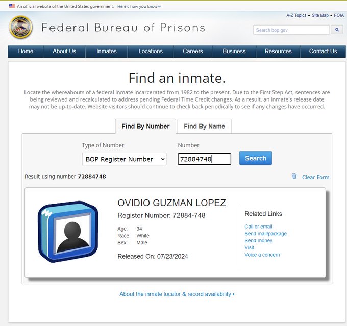 Continue readingOvidio Guzmán, el hijo de “El Chapo”, liberado después de la captura de líderes del Cártel de Sinaloa de acuerdo con la Oficina Federal de Prisiones
