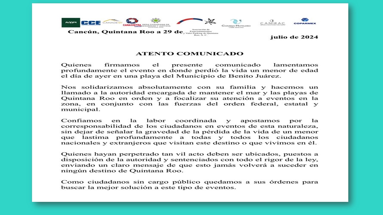 Continue readingLamentan empresarios muerte de menor baleado en playa de Hotel Riu de Cancún; exigen justicia