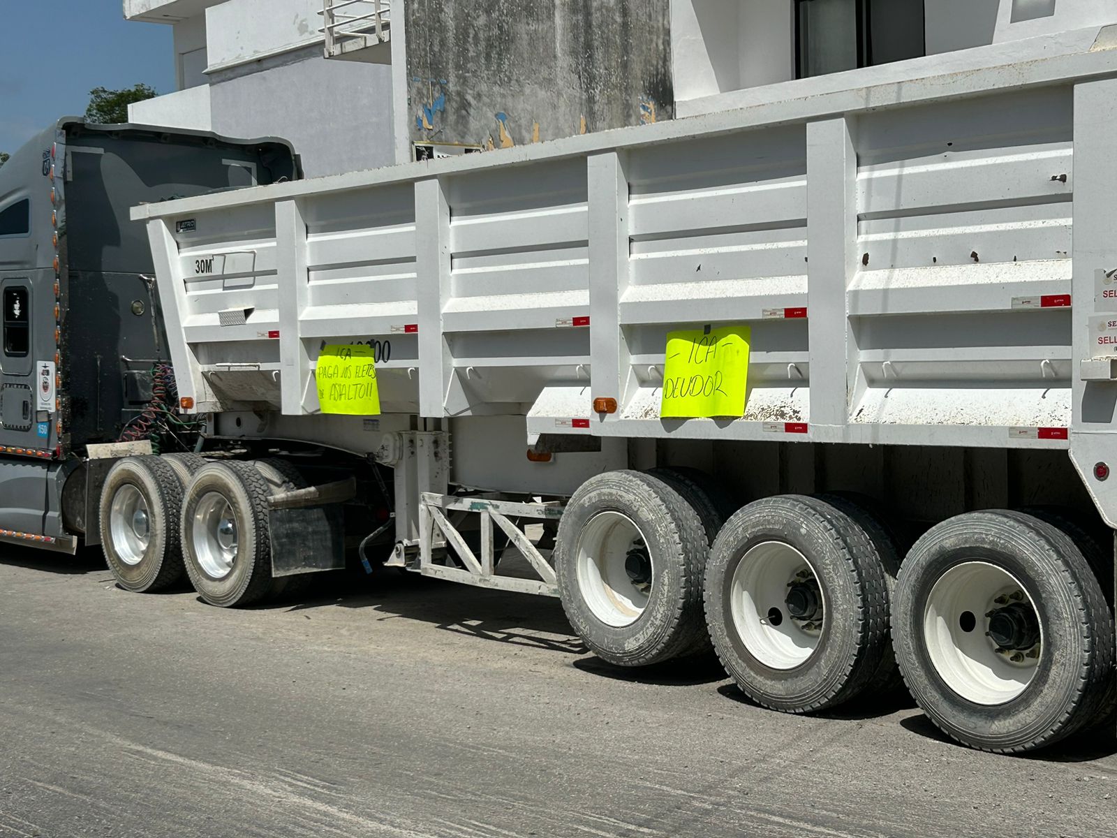 Alrededor de 10 conductor agremiados a la CTM iniciaron esta mañana una manifestación a las afueras de la empresa Ingenieros Civiles y Asociaciones (ICA), para exigir el pago por sus servicios en el traslado de asfalto a las obras del Tren Maya.