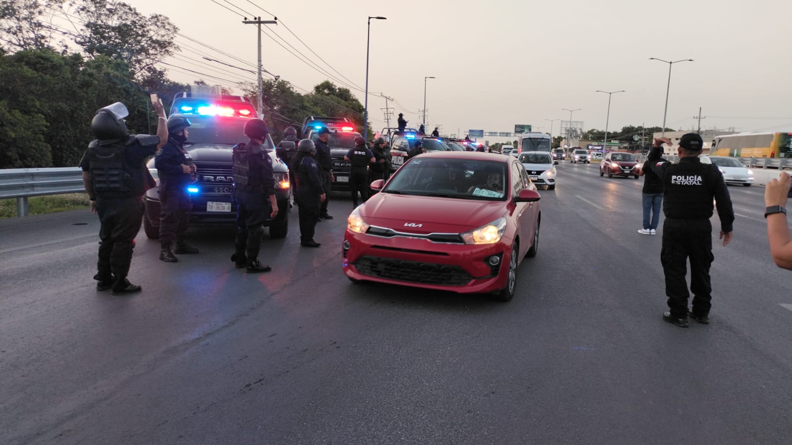 Los operadores de esta plataforma digital de transporte comenzaron a congregarse en Tajamar a partir de las cinco, aunque iniciaron su caravana hasta pasadas las seis. En tanto, unos ochenta agentes de la Policía Municipal, Estatal y Guardia Nacional montaron un operativo preventivo cerca del acceso al aeropuerto.