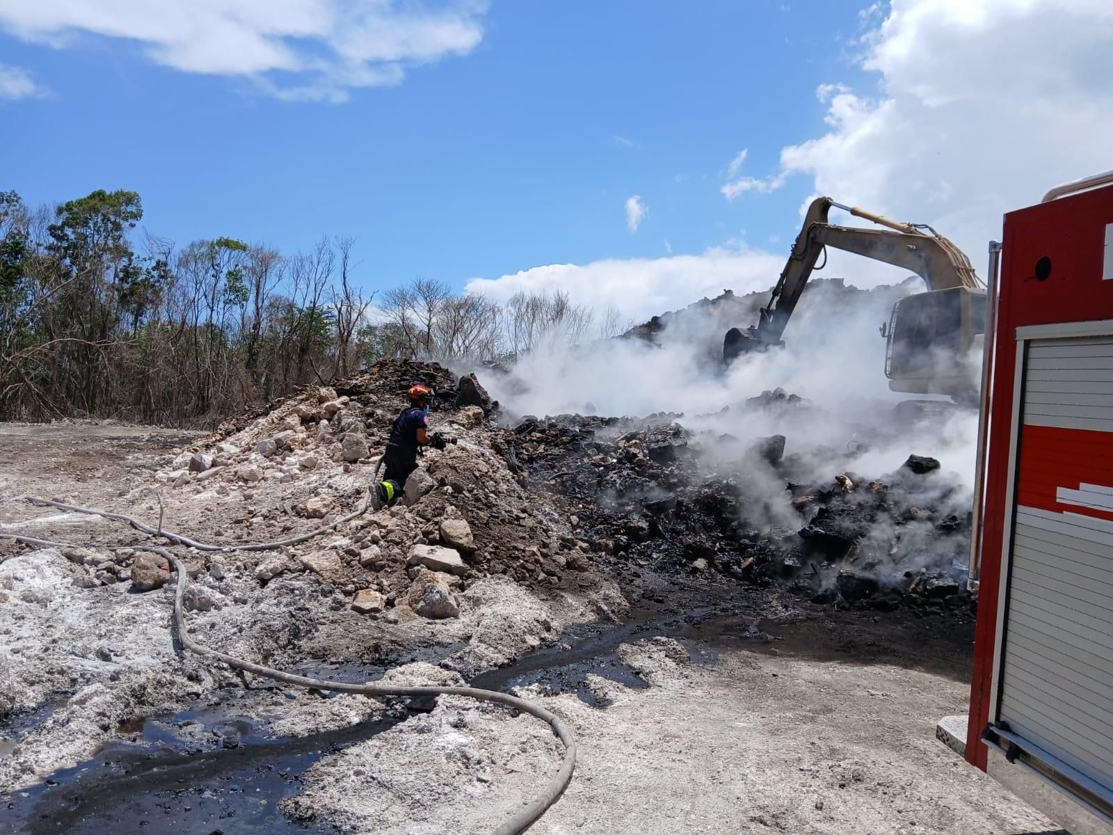 En el lugar, bomberos combaten las fumarolas rociándoles agua proveniente de cuatro pozos de absorción creados por Cadu, al igual que de una pipa. Los trabajadores de esta empresa, en tanto, se enfocan en ir retirando la basura, mayormente vegetal, que conforma este montículo, que comenzó a incendiarse la noche del 3 de agosto.