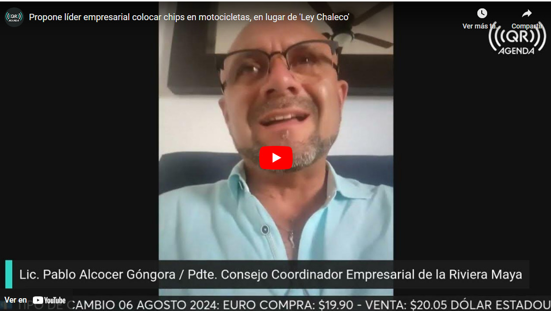 Pablo Alcocer Góngora, presidente del Consejo Coordinador Empresarial de la Riviera Maya (CCERM), propuso colocar chips en las motocicleta para disminuir así el uso de estos vehículos en actos delictivos, que es objetivo de la polémica “Ley Chaleco”.