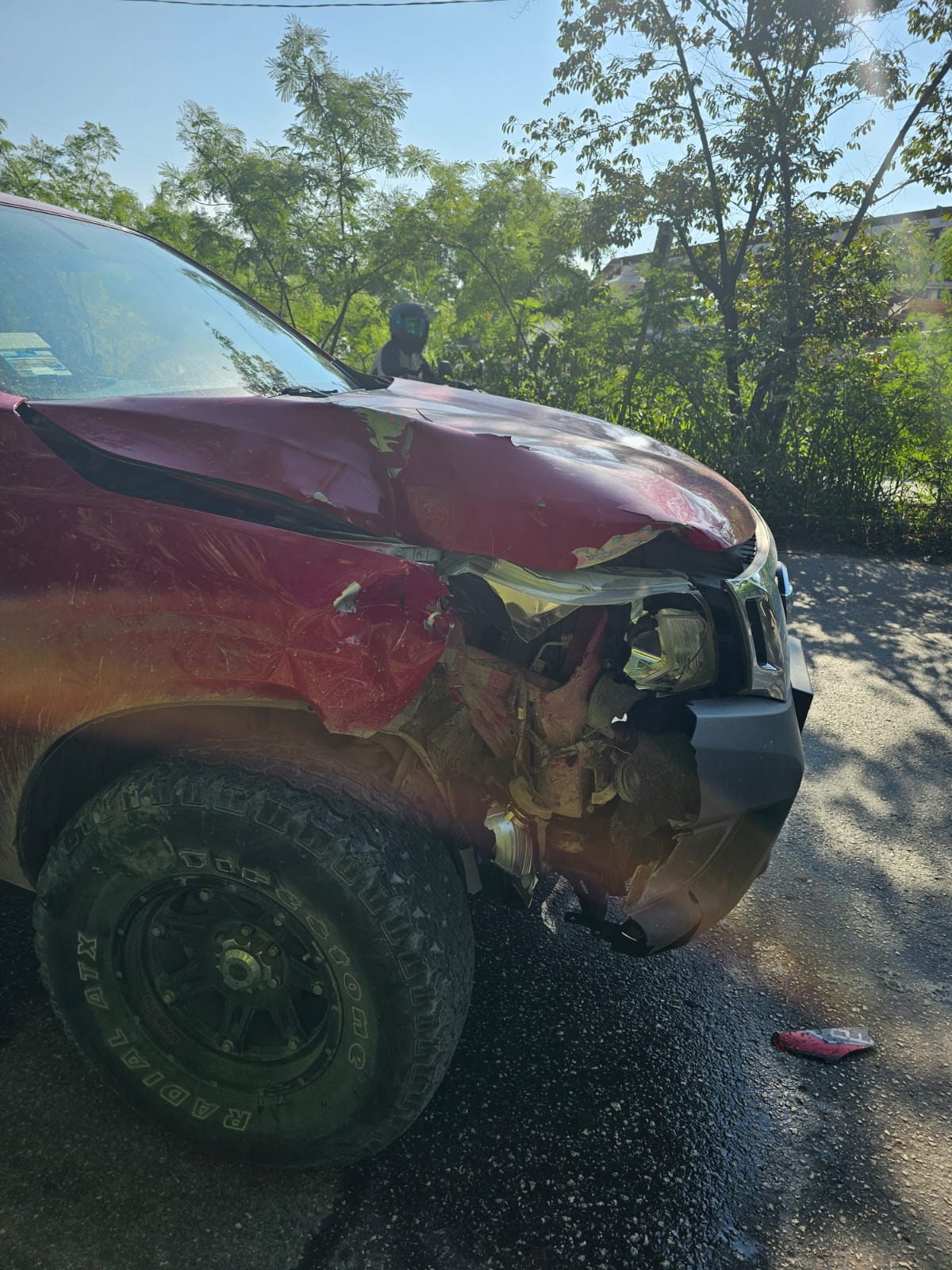 A consecuencia del impacto el motociclista salió proyectado y terminó sobre le pavimento con una lesión en la cabeza y algunas partes de su cuerpo, quien fue traslado al hospital por sus propios medios.