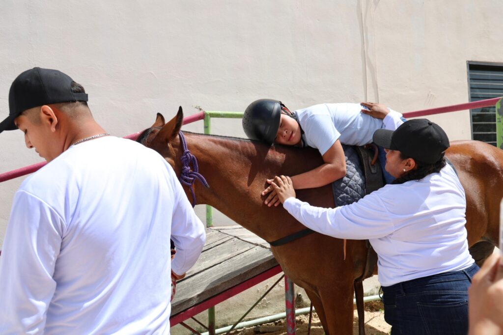 “Estoy muy feliz de compartirles que este Centro fue el primero de los Sistemas Municipales DIF en todo el estado, que cuenta con su propio centro de Equinoterapia acondicionado para una atención personalizada a la población con padecimientos, síndromes y requerimientos, al contar con cinco equinos, que sin duda vendrán a fortalecer las terapias de los pacientes”, dijo Verónica Lezama Espinosa.