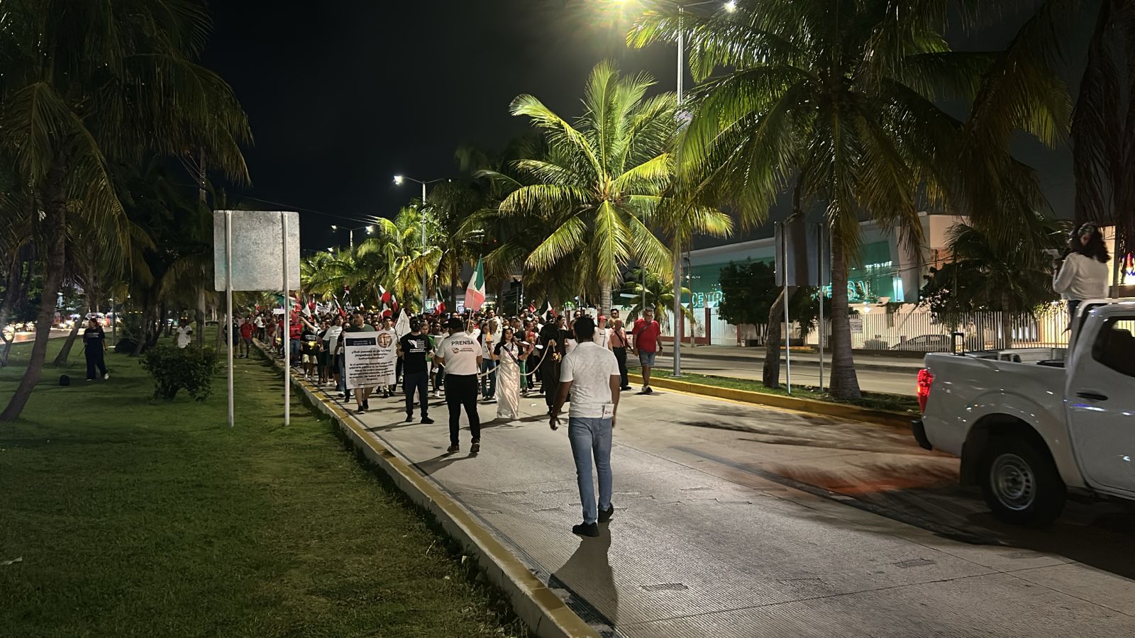 El contingente salió de la glorieta ubicada en la avenida Bonampak con Nichupté y tomó rumbo hacia el monumento de “El Ceviche”.