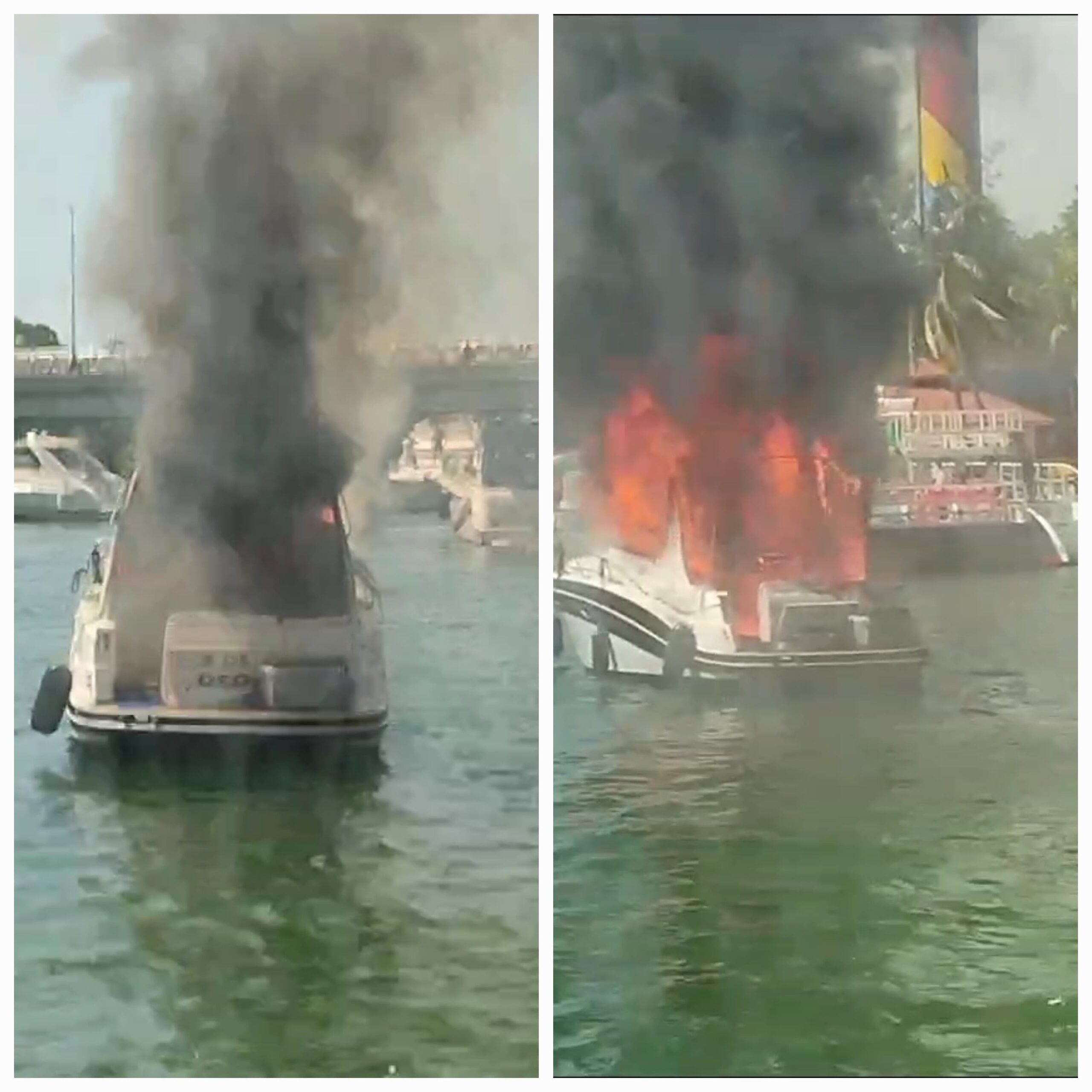Un yate se incendió esta mañana en la zona hotelera, al parecer por una falla mecánica provocada por un cortocircuito, cuando se encontraba en el kilómetro 4.5, a la altura del puente Calinda.