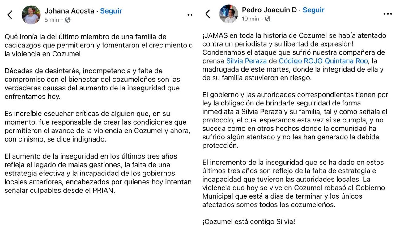 Continue readingConflicto político en Cozumel: Pedro Joaquín y Johana Acosta intercambian culpas por la creciente violencia