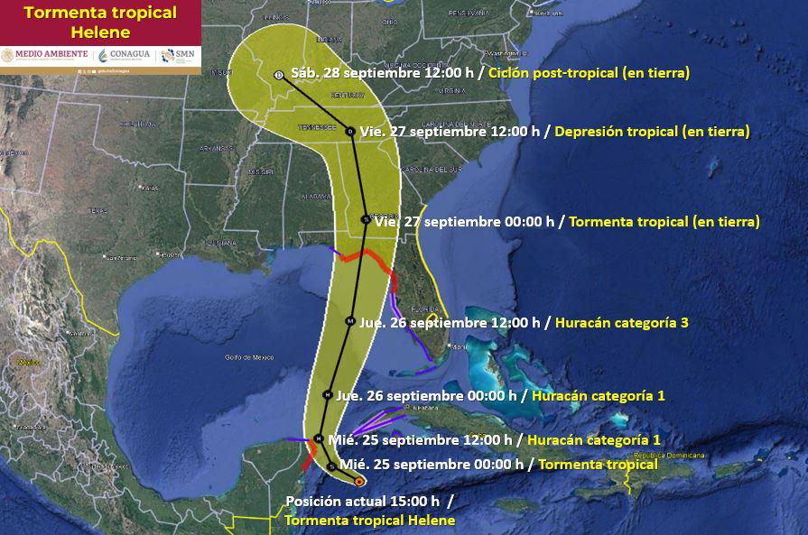 Sus bandas nubosas ocasionarán lluvias torrenciales en Yucatán y Quintana Roo, así como intensas rachas de viento y oleaje elevado en las costas de ambos estados, además de lluvias muy fuertes en Campeche.