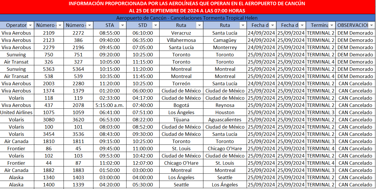 Continue readingCancelan más de 20 vuelos programados para hoy en el Aeropuerto de Cancún por Tormenta Tropical Helene
