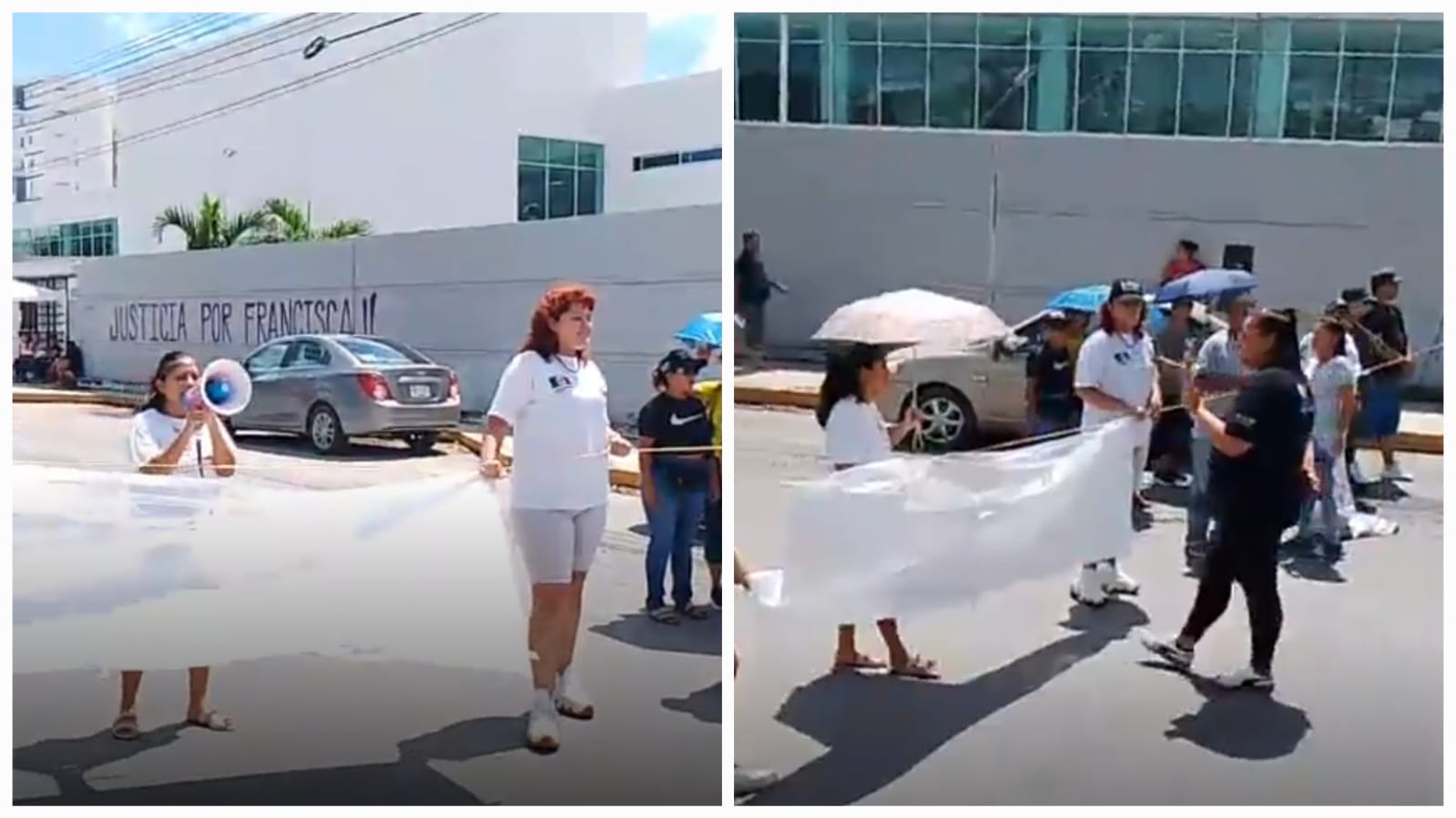 Al grito de “Justicia por Francisca”, “Viva se la llevaron, viva la queremos” y “Queremos acciones, no más simulaciones”, los manifestantes portaron mantas con la ficha de búsqueda de Francisca y se colocaron en medio de la calle con una cuerda para evitar el paso de los automovilistas.