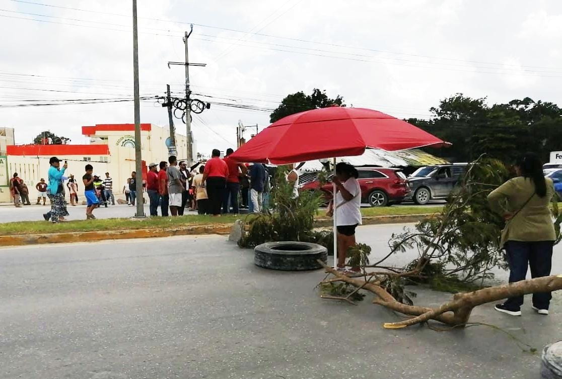 Utilizando troncos y piedras, los residentes bloquearon la vía en protesta por las pésimas condiciones de sus vialidades, especialmente el acceso principal.