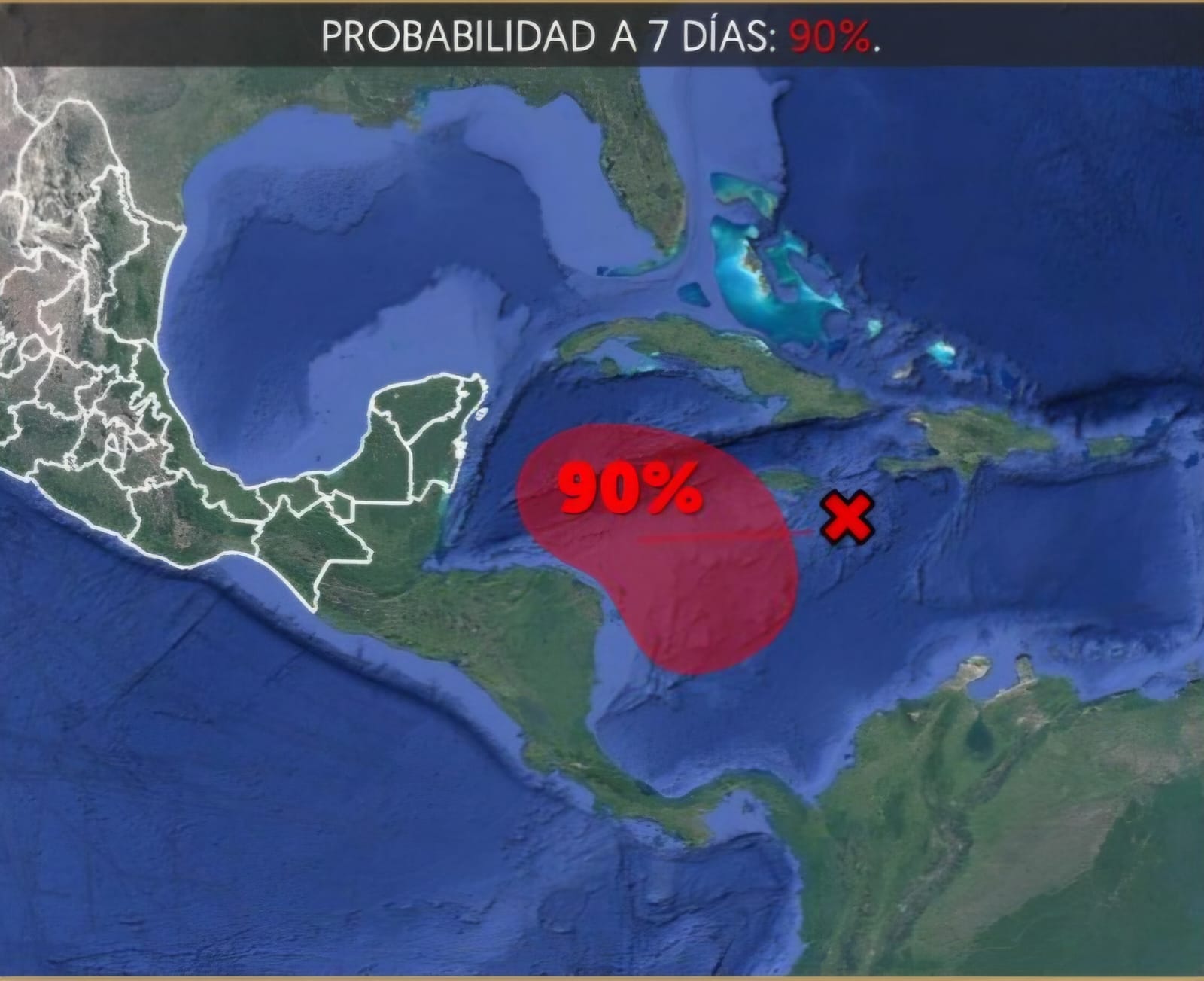 Chetumal.- La zona de baja presión ubicada en la zona central del mar Caribe, incrementó a 60 por ciento su probabilidad para desarrollo ciclónico en 48 horas y 90 por ciento en siete días.
