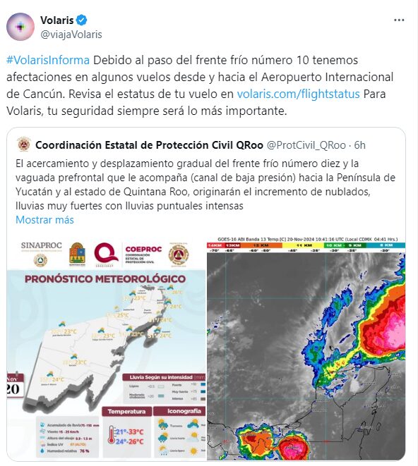Continue readingAerolíneas alertan sobre afectaciones en vuelos por frente frío número 10 en Cancún