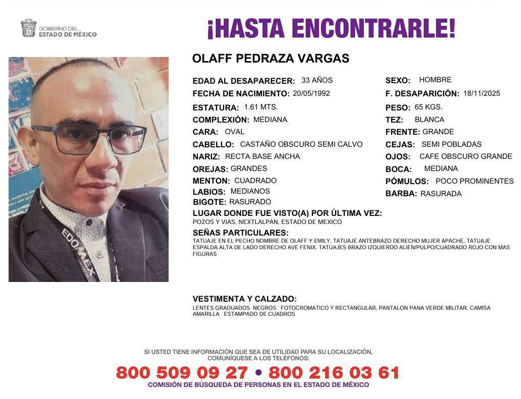 El cuerpo de maestro Olaff Pedraza fue encontrado por su hermano en un canal de aguas negras de Nextlalpan, Edomex, tras su desaparición el 18 de noviembre.