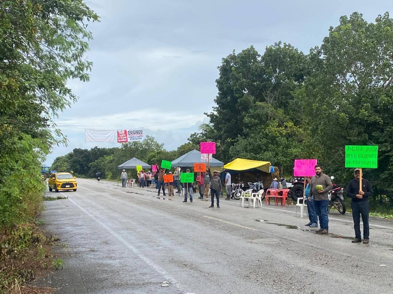 Unos 30 ganaderos de la Costa Maya iniciaron una protesta pacífica en la carretera Cafetal Limones-Majahual en contra de la recién aprobada Ley General de Aguas.