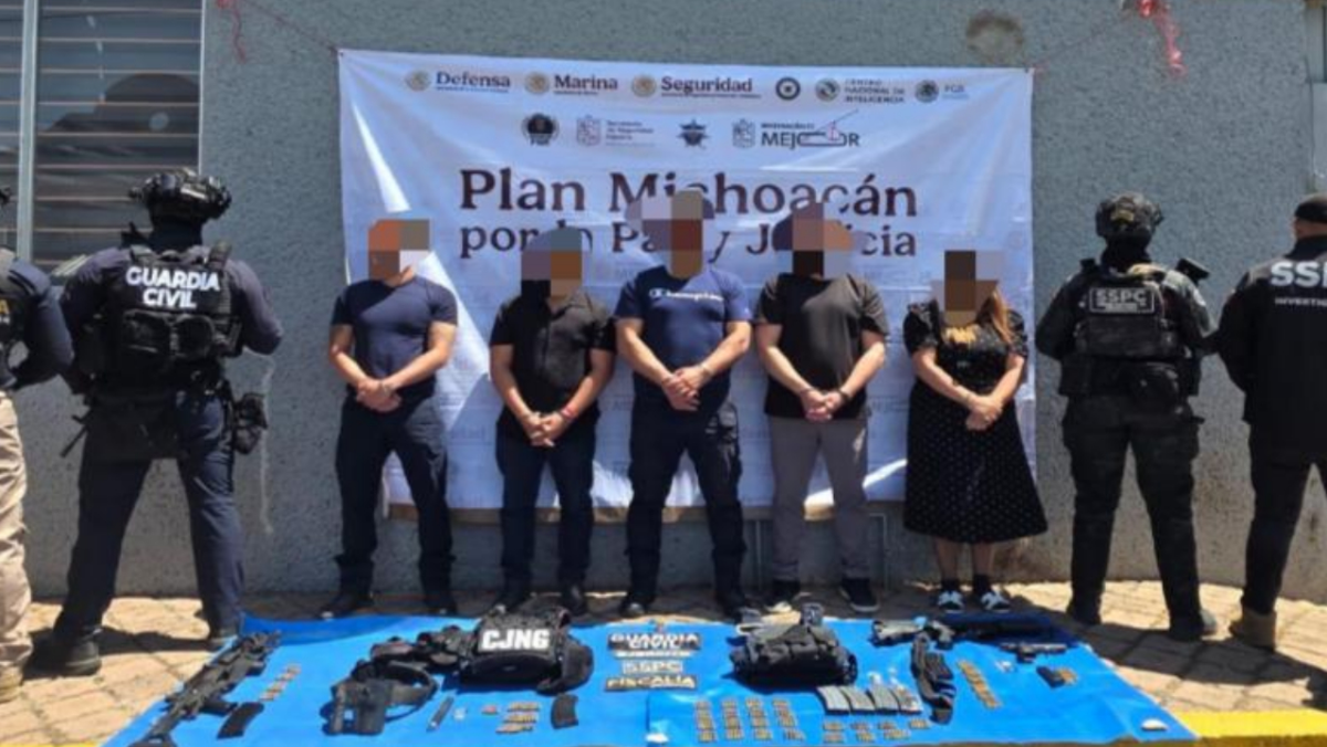 Operativo Enjambre logra el desmantelamiento de redes criminales en Michoacán; arrestan a funcionarios de Chavinda con armas y equipo del CJNG.