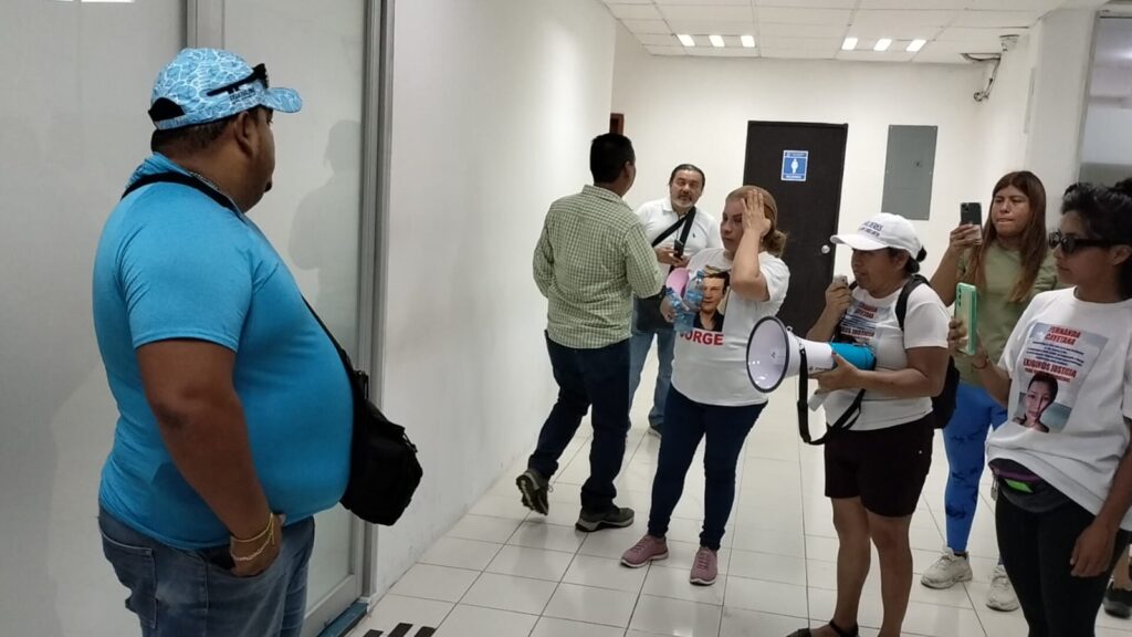 Cancún.- Integrantes del colectivo “Madres Buscadoras de Isla Mujeres Independiente” y familiares de Fernanda Cayetana, desaparecida hace dos años, marcharon desde la Zona Continental de Isla Mujeres hasta las instalaciones de la Fiscalía General del Estado (FGE) de esta ciudad, en donde bloquearon las oficinas del titular de este organismo.