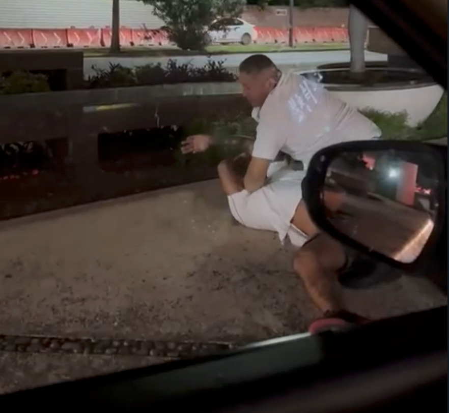 Según la versión de los testigos, el taxista de la unidad Nissan Versa, con número 3562 y matrícula A586TRW, bajó a golpes al conductor de Uber para luego tirarlo al piso donde continuó la agresión.