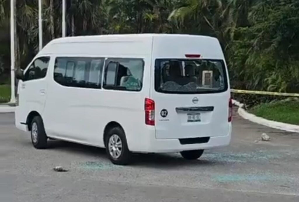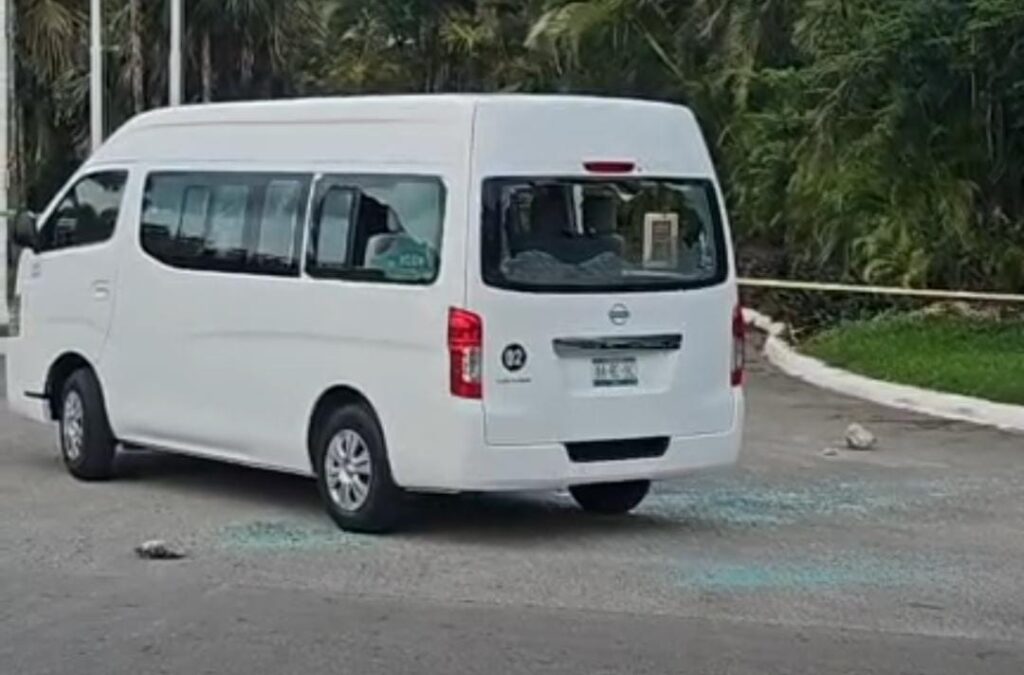 Fue cerca de las 10 de la mañana cuando en la zona hotelera sur, una Urban blanca con número económico 02 y placas 84-RE-5C con varios turistas a bordo fua atacada por los taxistas, quienes con piedras rompieron los cristales de las ventanillas y del parabrisas de la parte posterior.