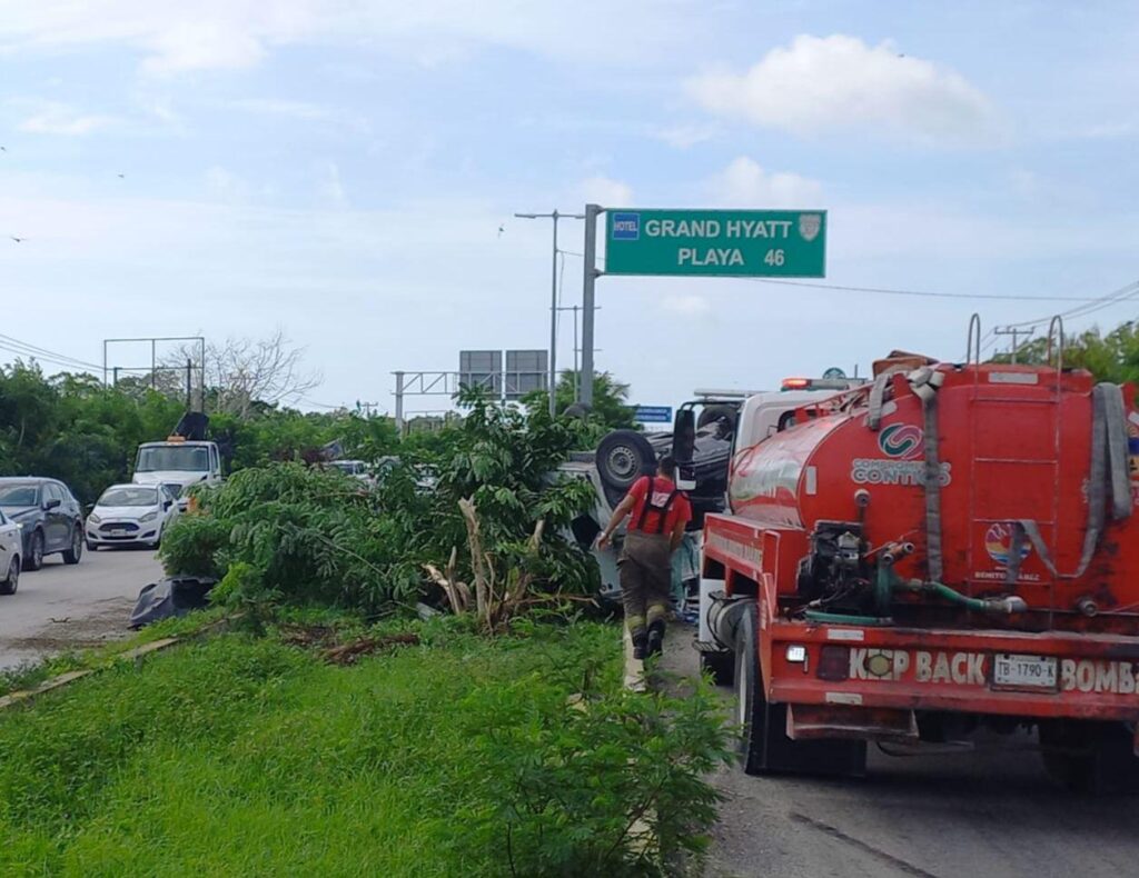 Esta volcadura ocasionó un intenso tráfico vehicular en este sentido de la carretera federal 307, que duró aproximadamente dos horas.