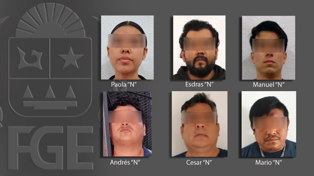 Las personas detenidas fueron identificadas con los nombres Ingrid “N”, Ramiro “N”, Yefri “N”, Simón “N”, Julio “N”, Luis “N”, Jesús “N”, Jaqueline “N”, Jesús “N”, Ana “N”, Karla “N”, Luis “N”, Axcel “N”, Cristian “N”, Eduardo “N”, Álvaro “N”, Teresita “N”, Mario “N”, Cesar “N”, Andrés “N”, Manuel “N”, Paola “N” y Esdras “N”.