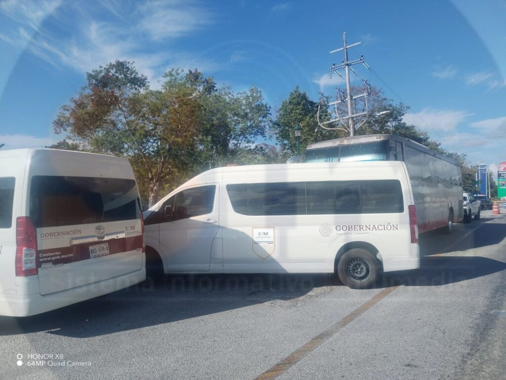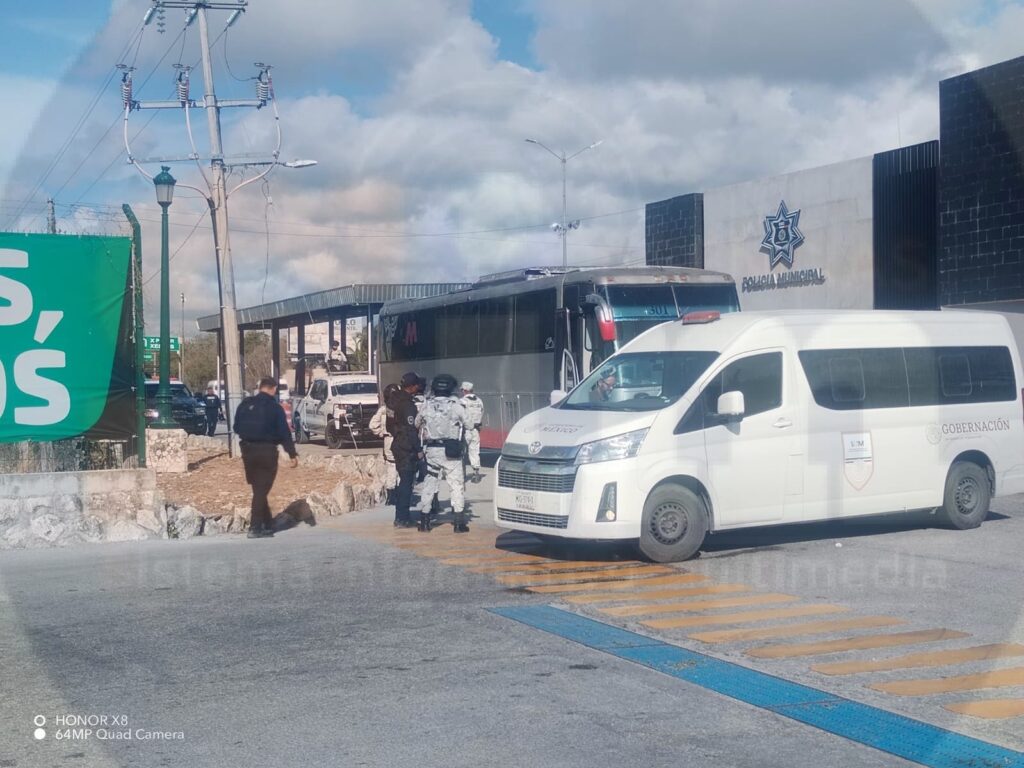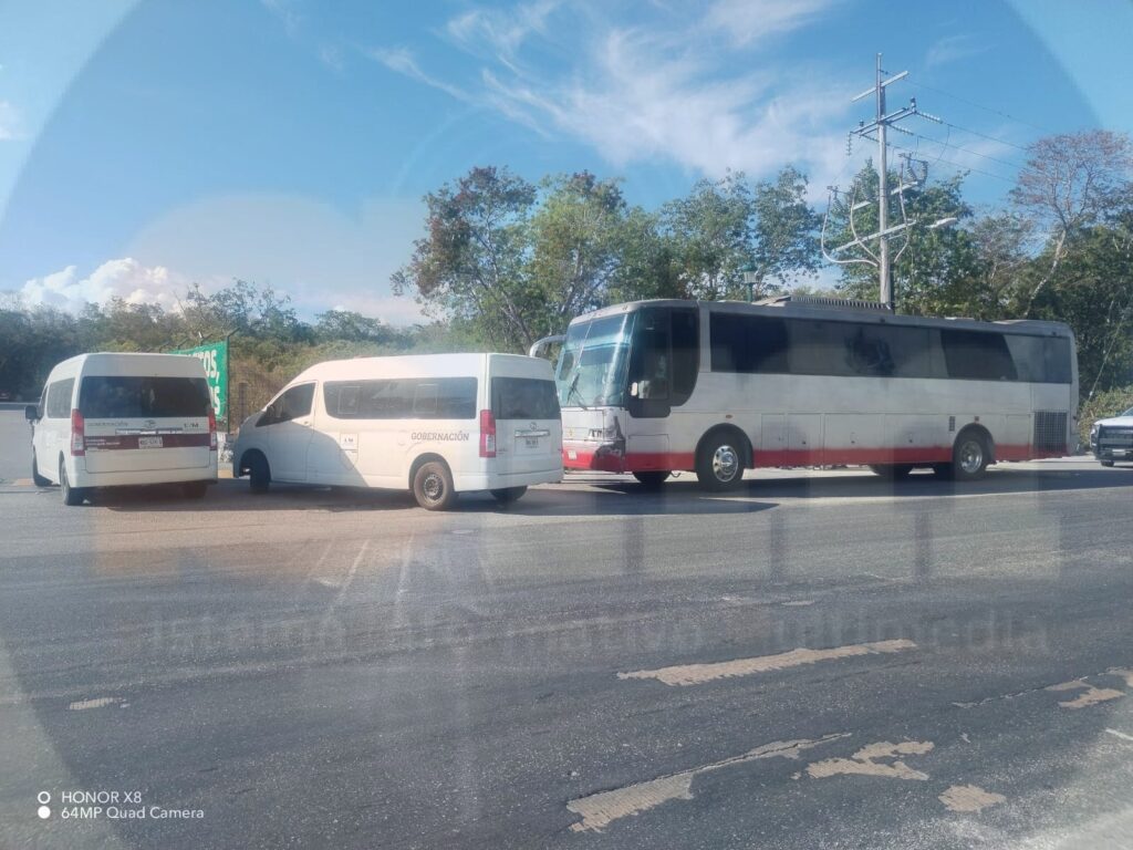 Playa del Carmen.- Un autobús interurbano, que traía a más de 20 personas extranjeras sin documentos, fue asegurado esta tarde en el filtro en la entrada sur de esta ciudad, y todas estas personas fueron trasladadas a las instalaciones del Instituto Nacional de Migración.