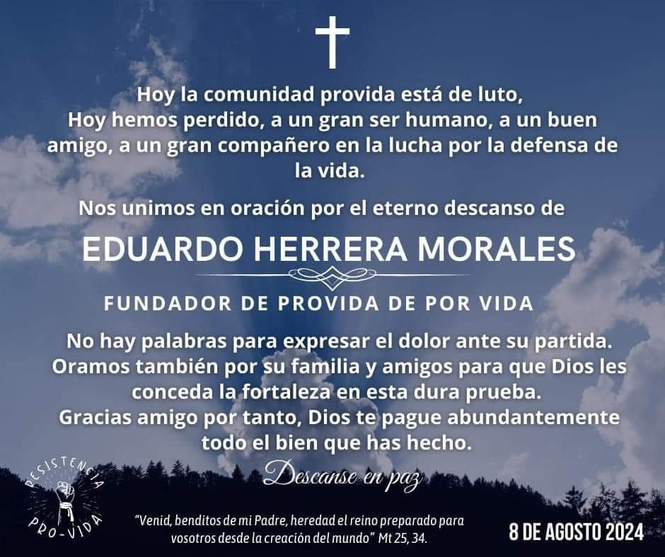 Cancún, Quintana Roo, 9 de agosto de 2024 – La comunidad de Quintana Roo ha sido conmocionada por el brutal asesinato de Eduardo Herrera Morales, un respetado empresario y fundador de la organización “Próvida de Por Vida” en Cancún. Herrera Morales, hermano del Padre Rodrigo Herrera Morales, era una figura destacada en el movimiento provida a nivel estatal, habiendo sido fundamental para la organización de marchas y actividades en contra del aborto.