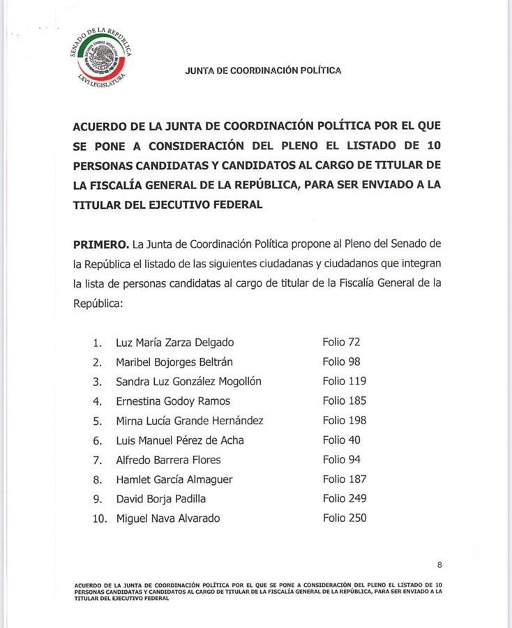 Se registraron 43 aspirantes ante el Senado para ocupar la vacante del Titular de la FGR tras la renuncia de Gertz Manero.. El proceso incluye a Ernestina Godoy y Ricardo Peralta.
