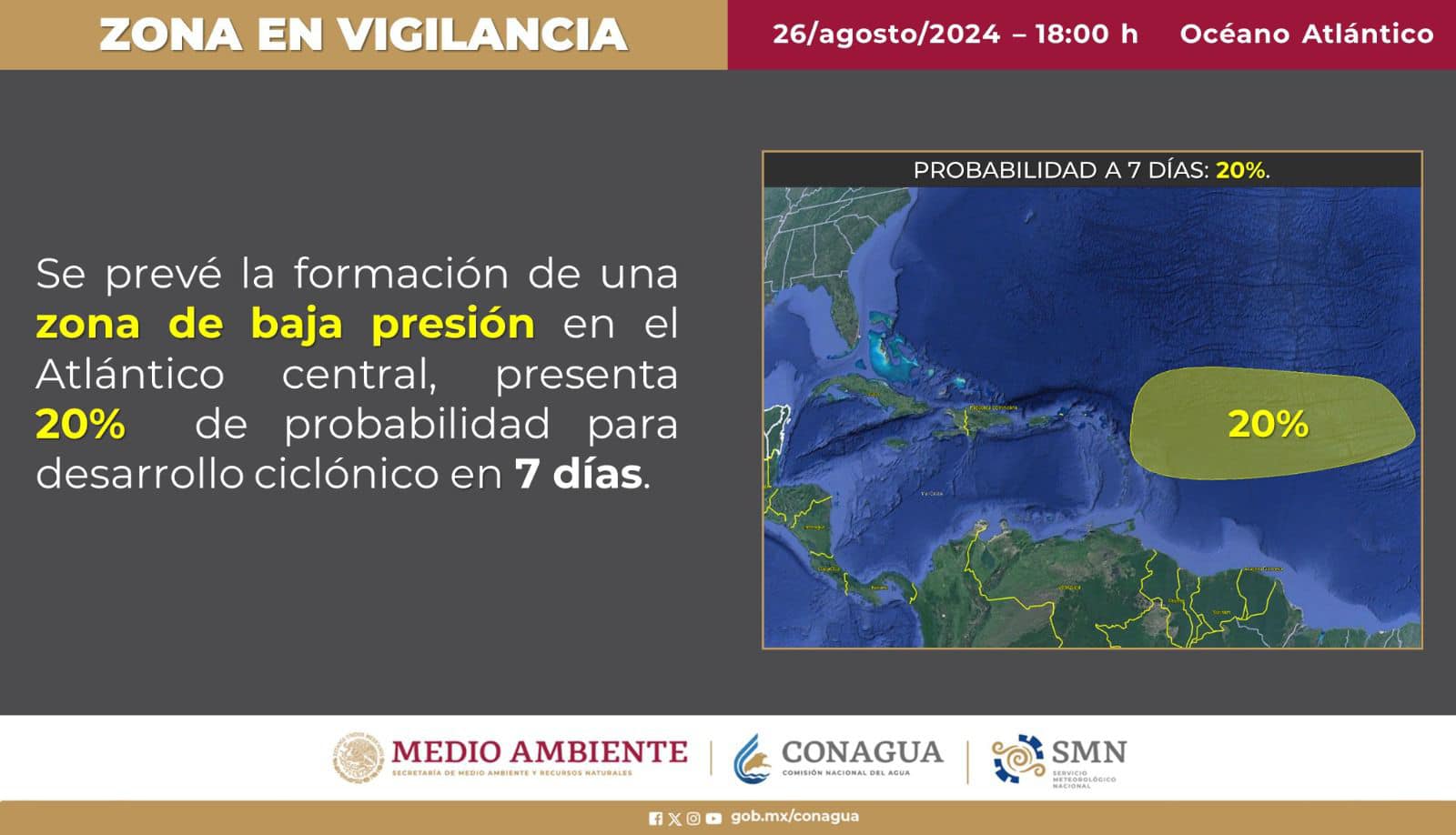 Ante esta alerta, las autoridades han iniciado la vigilancia formal de esta perturbación y recomiendan a la población estar al pendiente de las próximas actualizaciones a través de los medios oficiales, entre ellos la Comisión Nacional del Agua (CONAGUA).