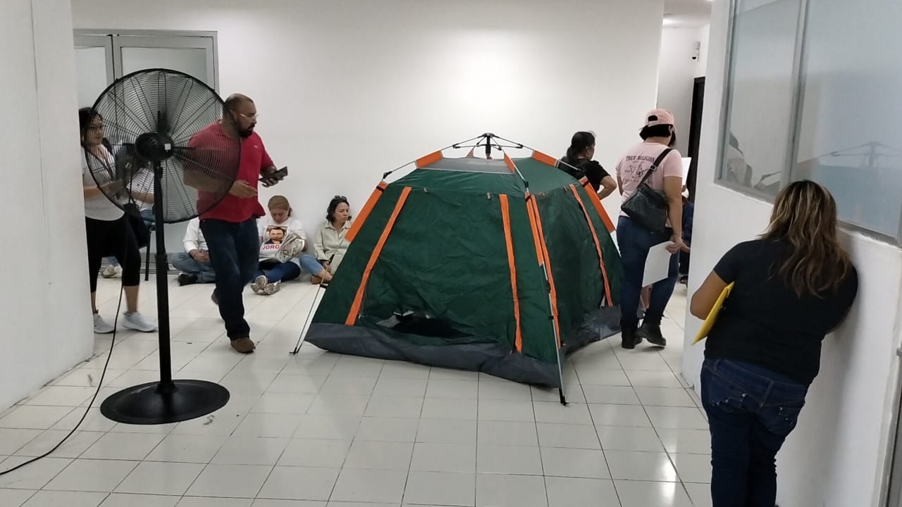 Un grupo de estas activistas marchó hoy desde Rancho Viejo, hasta estas instalaciones, en Cancún, para marcar los dos años de la desaparición de la menor Fernanda Cayetana, además de exigir resultados para dar con su paradero.