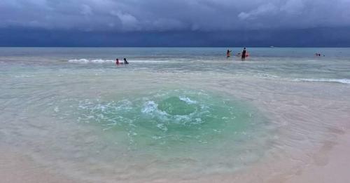 Según informes, un ojo de agua surgió en una de las playas de Cozumel, cerca del Malecón de la Isla de las Golondrinas. Días después, un fenómeno similar fue detectado en Playa del Carmen, rápidamente volviéndose viral en las redes sociales.