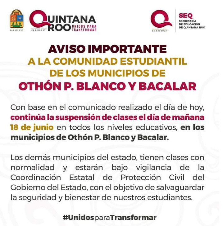 Continue readingOtro día de suspensión de clases en Bacalar y Chetumal por fuertes lluvias
