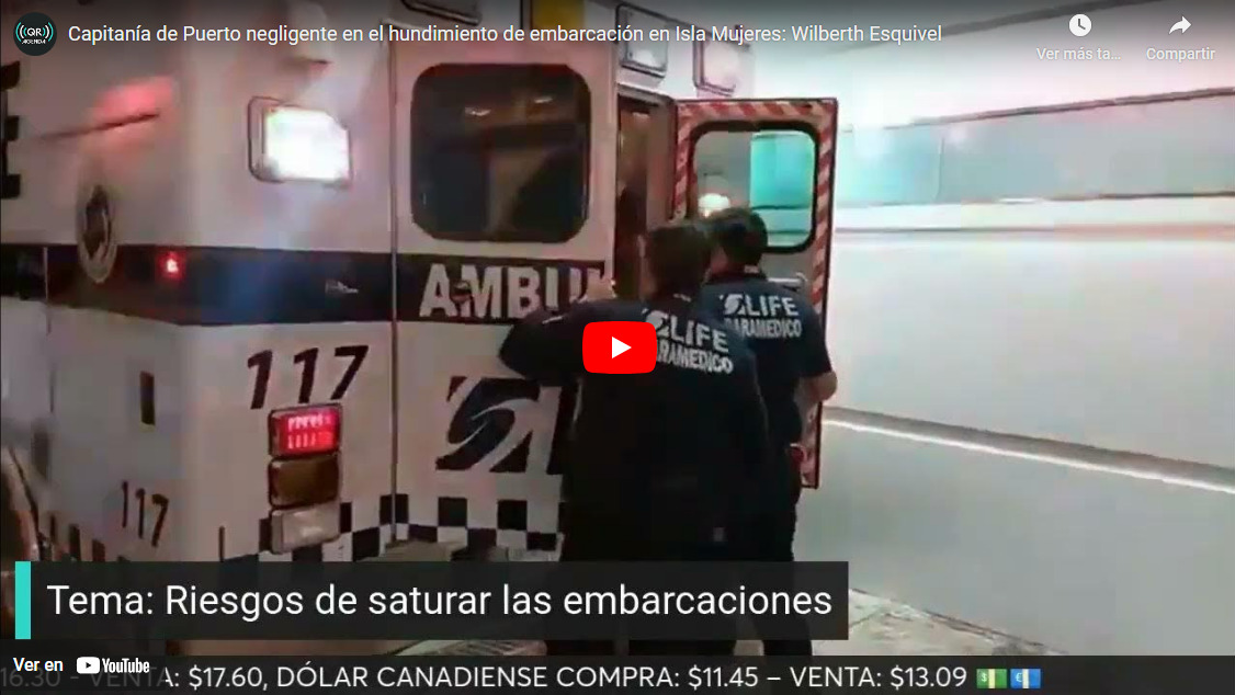 En opinión del experto en pesca deportiva y consultor ambiental, Wilberth Esquivel, no solo el capitán de la “Diosa del Mar”, pudo haber actuado de manera negligente durante el hundimiento de la embarcación en la que perdieron la vida 4 personas en #IslaMujeres también lo es Capitanía de Puerto que de manera permisiva y complaciente autoriza el exceso de pasajeros en esas tiburoneras que no deberían superar los 10 pasajeros y dos miembros de la tripulación.